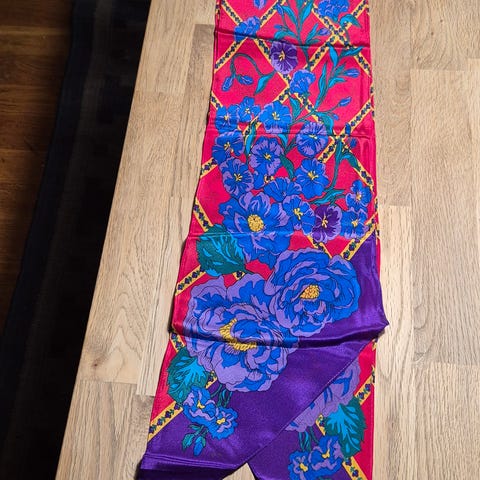 Tørklæde, Marilyn Monroe, str. 200 x 110 cm, lilla, grå, silke, uld , Næsten som ny, Luksuriøst og kæmpestort tørklæde. Med sjov design: Marilyn Monroe, skrift... Af dejlig kvalitet, meget varm og blød. i silke og uld.. Som ny, fejler intet. Mærke ukendt. Fra et rent, røg- og dyrefrit hjem.