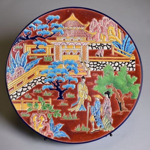 Rullevase med japanskinspireret dekoration udført af Christian Leclercq, keramiker og bedste håndværkere i Frankrig for den berømte Longwy-fajancefabrik.