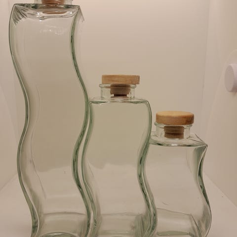 Form: beholdere med kvadratisk tværsnit, krop, der smalner mod bunden