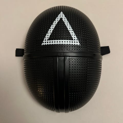 Squid Game Kostume til voksne bestående af heldragt, bælte, maske og 3 tegn.