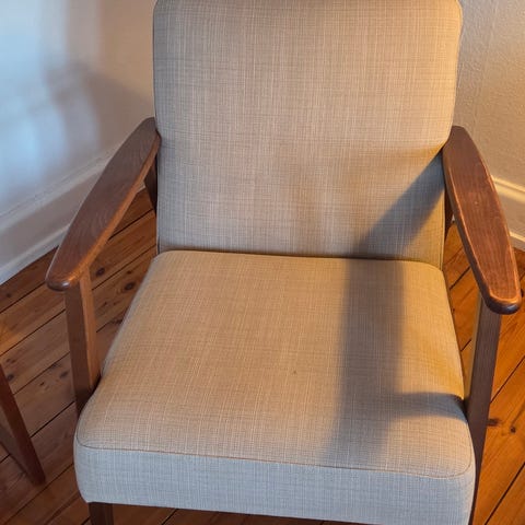 Behagelig lænestol sælges. Tror det er IKEA, men kan også være noget andets Benene kan skrues af, så den er til at komme rundt med. Kan afhentes på Østerbro.