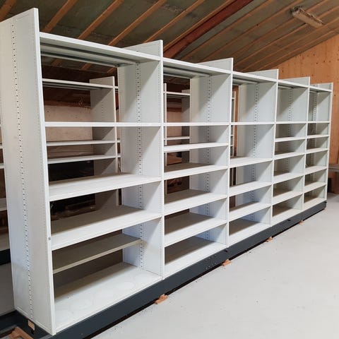 Der er 1472 hylder der måler 29,5*116,5 cm, 161 gavle der måler 29,5*228 cm, 60 gavle der er 212 cm høje, 28 gavle der er 190 cm høje.
