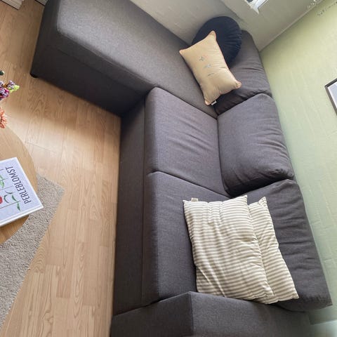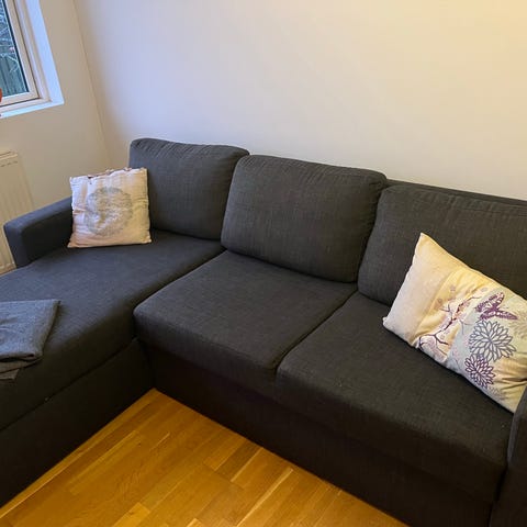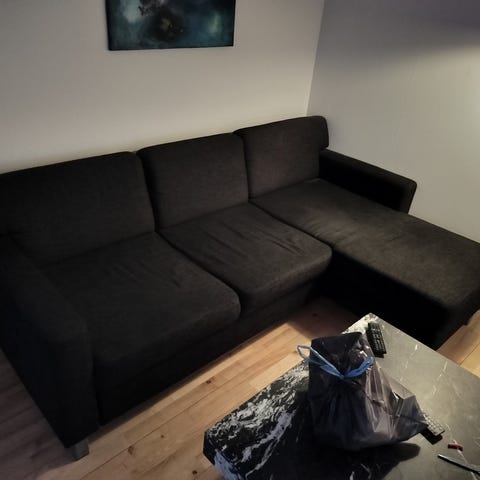 Mørkegrå sovesofa med chaiselong
