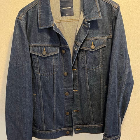 Jack & Jones +Fit denimjakke i størrelse 3XL. Jakken er blå og lavet af denimmateriale. Designet til mænd og egnet som yderbeklædning.