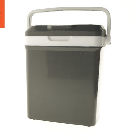 En blå køleboks med låg, ideel til opbevaring af mad og drikke på turen. Boksen har en kapacitet svarende til dimensionerne 38x36,5 cm, hvilket giver plads til forskellige typer af indhold. Låget er let at fjerne, og indersiden er hvid og viser lette tegn på brug.