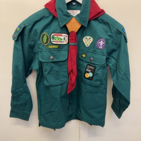 Original KFUM uniform og bælte i pæn stand. Størrelse 8 år men kan sagtens bruges til yngre med ærmeopsmøg