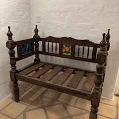 Gammel sofa/bænk i træ. Kommer oprindeligt fra Singapore (har selv importeret den) . Det er en en stol/bænk til at ride på elefanter.
