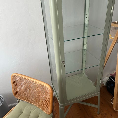 Super flot lysegråt vitrineskab. Den fremstår som ny.