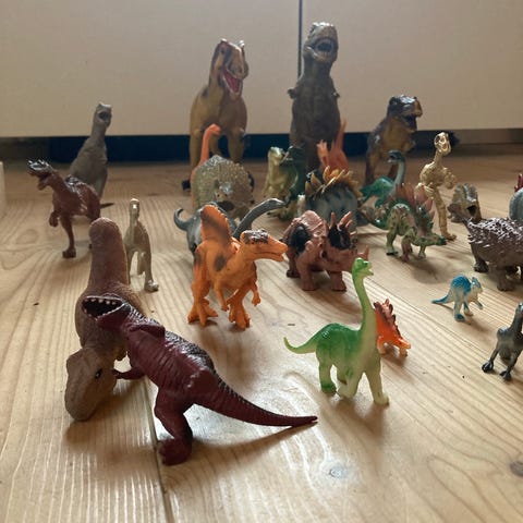 Sæt med forskellige dinosaur figurer i plastik. Indeholder flere forskellige arter og størrelser. Perfekt til den lille dinosaur elsker.
