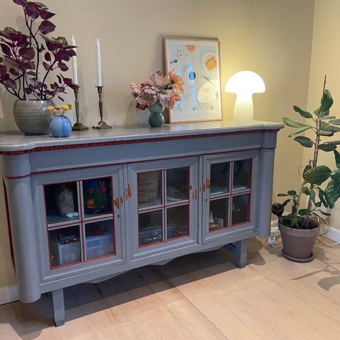 Har været brugt til lidt forskelligt såsom opbevaring eller siddeplads ved bordet, med praktisk tilhørende plads under.