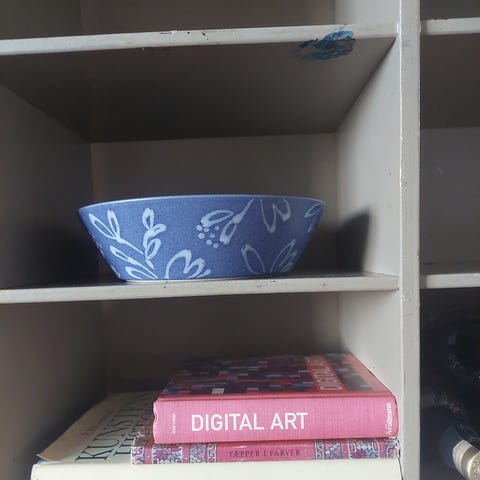 Skulptur, frugtskål, frugtfad, bordskål, keramikskål, serveringsskål, bordfad. Kønt med frugt & grønt som kontrastfarve, appelsiner, mandariner etc.
