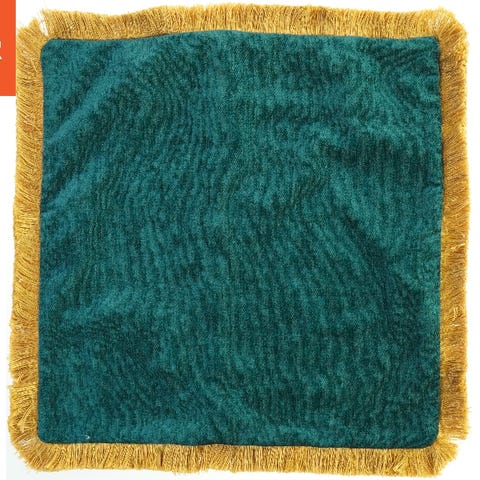 grøn kvadratisk pude med kvaster fra H&M (str. 50x50 cm)