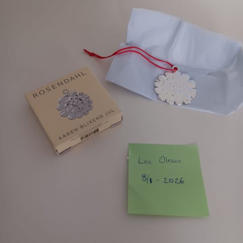 Dette er en juledekoration fra Rosendahl, formet som en svane. Den har en glat, skinnende overflade og er forsynet med en snor til ophængning, hvilket gør den ideel til brug som en juleornament. Dimensionen af dekorationen er 5 cm.