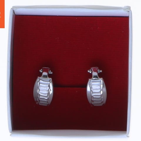 Et par øreringe i snoet sølvdesign. Øreringene har en unik geometrisk form og en glat overflade. De måler 6,5 cm i længden. De er ideelle til at tilføje et strejf af elegance til enhver påklædning.