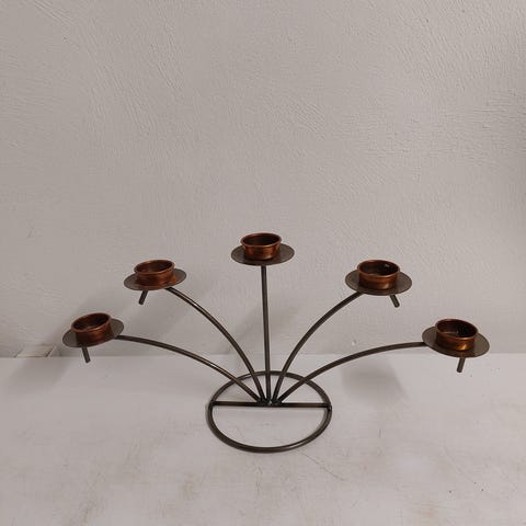 Kobbetfarvet geometrisk lysestage i metal (str. 20x14x14 cm)