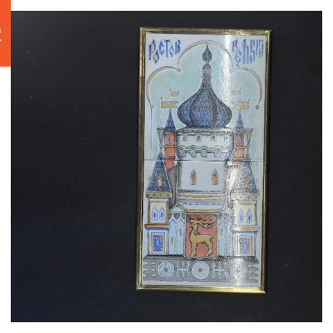 Dekorativ indgraveret motiv, placeret på en rektangulær sokkel. Den har et detaljeret design med fremhævede elementer, der repræsenterer Jerusalem. Lavet af sølv 925 med en glansfuld finish. Der er en mærkat på bunden med teksten 'H.Karshi Jerusalem 925 silver'.