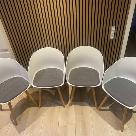 Stolene er brugte og har almindelig slidtage men fungerer fint og er stadig pæne.