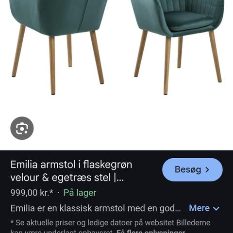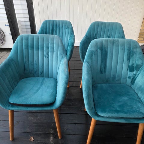 Sælger 4 stk. Emilia spisestole i flaskegøn velour med ben i eg.