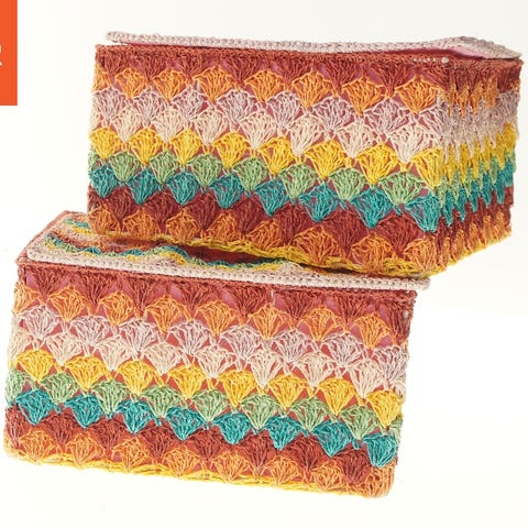 En grøn foldbar opbevaringstaske, der kan bruges til at organisere diverse genstande. Den består af en række sammenfoldelige sektioner og er samlet med snore til at holde den sammen, når den ikke er i brug. Tasken er lavet af et let, slidstærkt materiale og måler 84x15 cm i udfoldet tilstand.