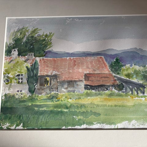 Maleri i akvarel, der forestiller bymotiver fra Venedig med kanaler, både og bygninger. Malerierne er indrammet og viser detaljerede bylandskaber med fokus på vand og arkitektur. Pr stk 60kr. Tag begge for 110kr