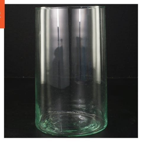 Dette er en glaskrukke eller vase med en størrelse på 17x7 cm. Den har en cylindrisk form med en bred åbning på toppen, ideel til dekoration eller opbevaring af små blomsterarrangementer. Farven er gennemskinnelig mørk, som giver et stilfuldt og elegant udseende til ethvert rum.
