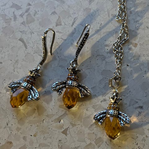 Tags: smykker, sæt, halskæde, øreringe, ring, bladmotiv, sølvfarvet