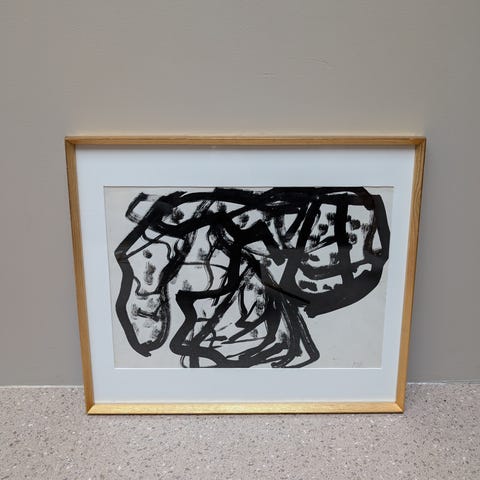 Olie og gouache monteret i massiv olieret egetræsramme.
