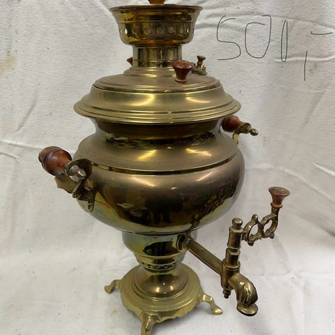 Messing, Diverse messingbelagte ting: Lysestage, fløjte og rundt fad diam. 35 cm. Pris fra kr 25,-