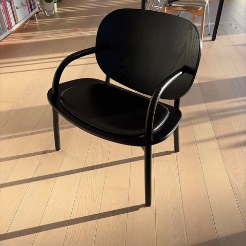 Smuk Cloudy Lounge Chair fra Mater i sort, udført i FSC-certificeret eg og fineret eg. En elegant og komfortabel loungestol med bløde linjer og et tidløst udtryk, der passer perfekt ind i både moderne og klassiske hjem.