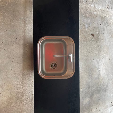 Sort granit køkkenbordplade med vask og afløb