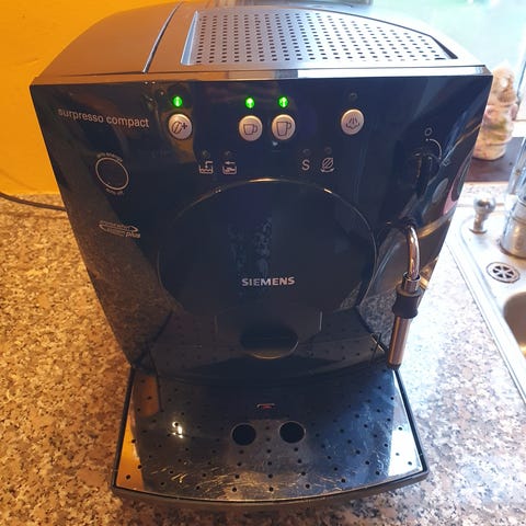 Pæn og velholdt Siemens espressomaskine sælges. Modellen er kendt for sin kompakte størrelse og Aroma Whirl-system, der giver en god kop kaffe eller espresso. Den er nem at betjene med få knapper og har indbygget mælkeskummer til cappuccino.