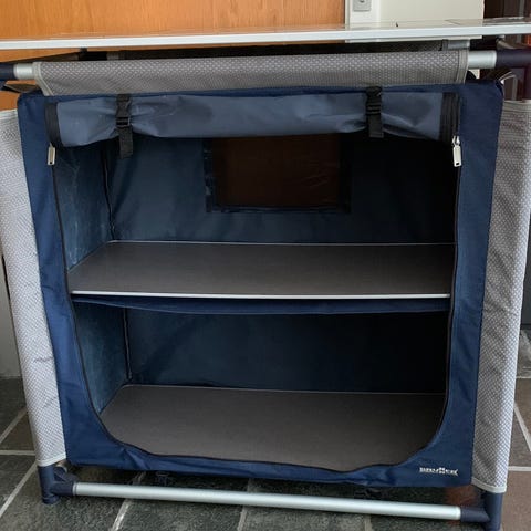 Lille telt til at lyne fast på anden fortelt. Fx som opbevaringstelt. Brugt og har synlige brugsspor. Bredde 135. Højde 113. Dybde 126.