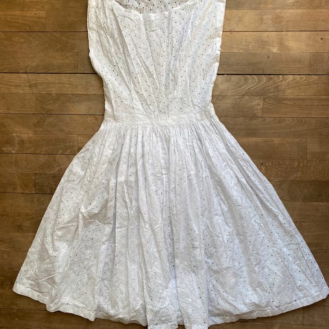 Kjole/tuinika i broderie anglaise til særlige lejligheder hvid bomuld str. 36