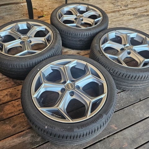 Sprit nye Brigdestone sommerdæk med sprit nye fælge. Var købt ind til vores Hyundai i30 inden den blev totalskadet.