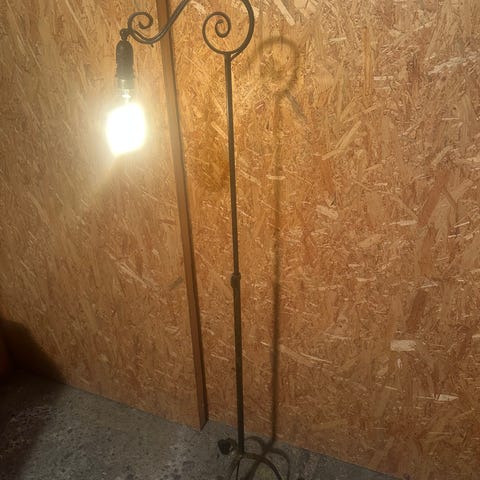 Gammel standerlampe i smedejern, kan reguleres i højden.