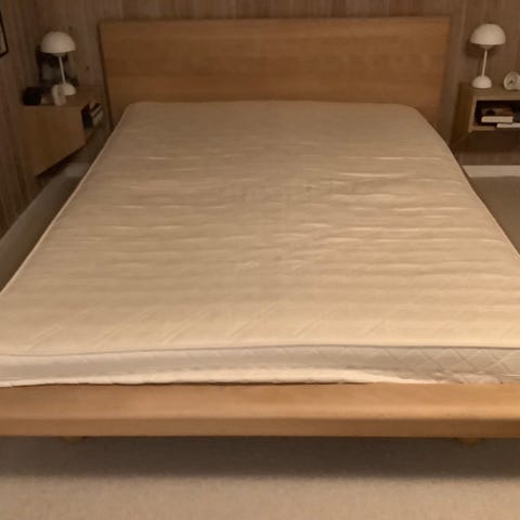 Sengen har en enkel og funktionel ramme i lyst træ, der passer til forskellige soveværelsesindretninger. Sengen er velegnet til brug med standardmadras i størrelsen 140x200 cm.