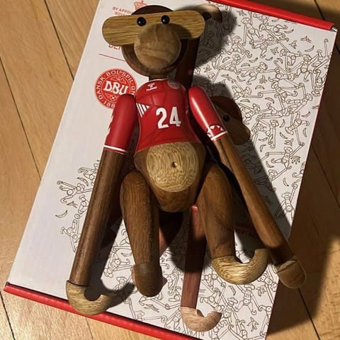 Kay Bojesen Denmark abe rød studenterhue, lavet i træ.