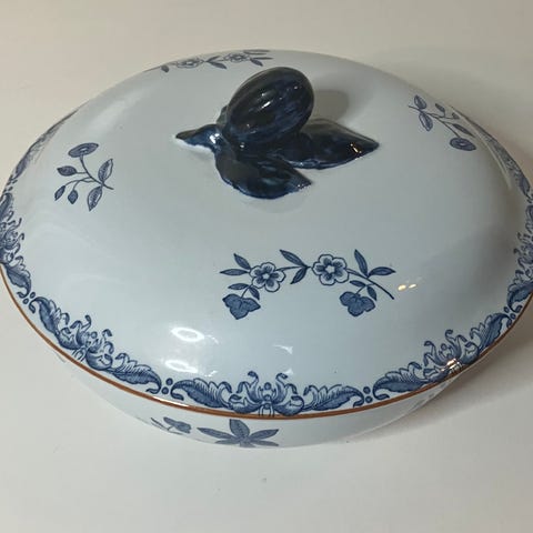 Rörstrand Ostindia æggebægre i porcelæn med blå blomster- og skibsdekoration. Sættet indeholder 3 stk æggebægre. prisen er for alle 3