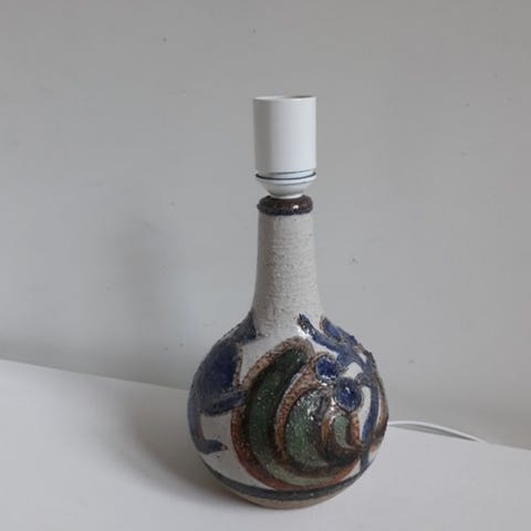 Super flot og stor keramisk bordlampe fra Søholm. Designet og dekoreret af Noomi Backhausen og Poul Brandborg. Serien er kendt under navnet Erika og lampen har nr. 3063/3. Signeret Søholm og i perfekt stand.