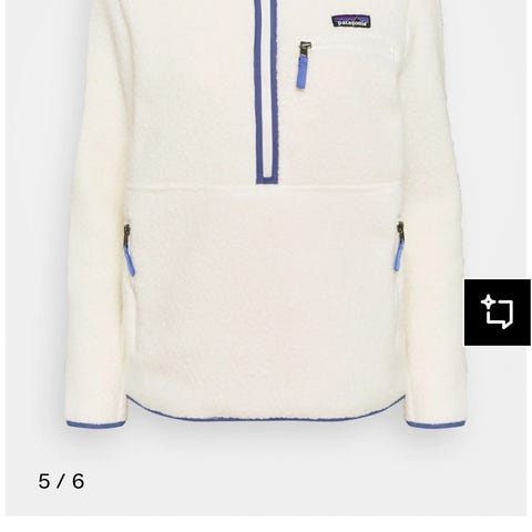 Patagonia fleece trøje i størrelse M. Trøjen er beige med en sort brystlomme. Fremstillet i fleece materiale.