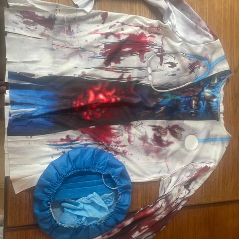 Zombie kostume til unisex. Kostumet inkluderer overdel og bukser med detaljer, der efterligner et forfaldent zombie-udseende.