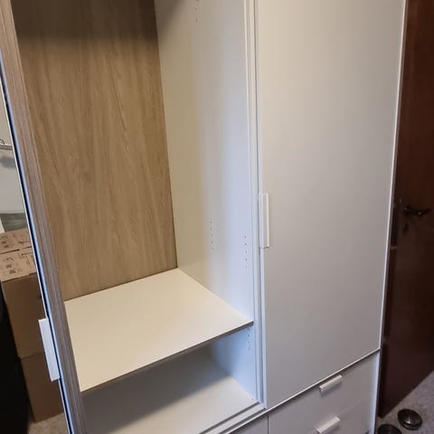 2 stk garderobe skabe med skydelåger og 4 skuffer