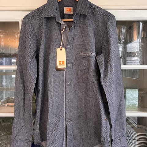 Skjorten fremstår i rigtig pæn stand og er behagelig at have på – velegnet både til hverdag og mere pænt brug.