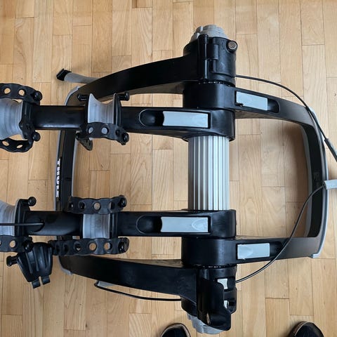 Thule cykelholder til bil med integreret nummerpladeholder. Fremstillet i metal og plastmaterialer. Designet til montering på bilens anhængertræk. Velegnet til transport af cykler på bil.