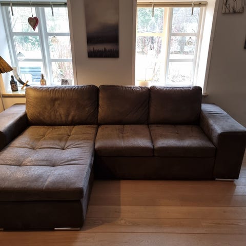 Har haft sofaen i 7 måneder bor alene så den er ikke blevet brugt så meget, skal flytte så får ikke plads til den det nye sted, der er et enkelt lille hul i den ellers ser den ny ud, ny pris på den var 4500