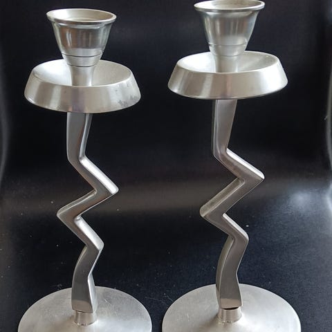 2 stk. Vintage aluminiums zig zag lysestager fra 1980’erne, design af Matthew Hilton