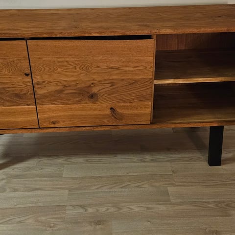 Fin olieret egetræs skænk. Et mærke efter vandskade fra en urtepotte . Kan nok slibes væk.