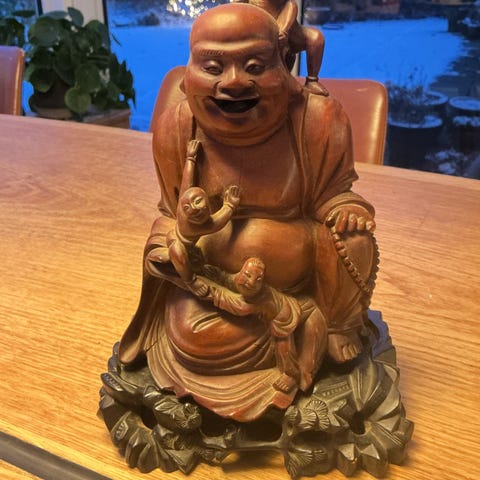 Rigtig fin stor figur med et par revner 2 steder men ikke noget der ses når den står på gulvet massiv træ så den er tung