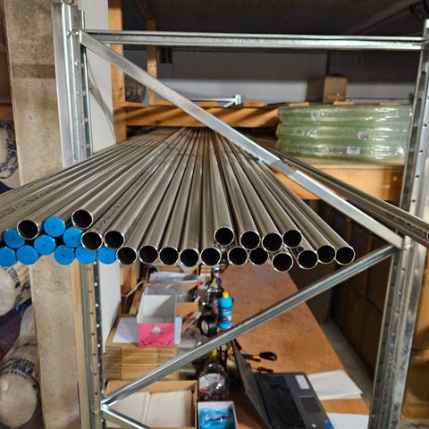 2 stk. 2" rør af rustfri stål, længde 200 cm, Ø54,1 m/m, godstykkelse 2 m/m, pris pr. stk. kr. 200,- begge rør for kr. 350,-