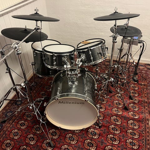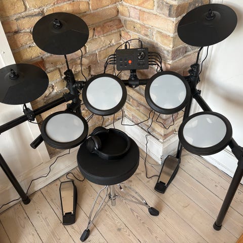 Der kun det på billedet, ingen stol eller trommestikker.